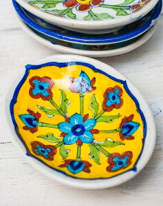 ■ジャイプール陶器のソープディッシュの詳細 大きさ約9.5cm×12.5cm×3cm 素材陶器 重量120g程度 ご注意ハンドペイントのため、商品ごとに多少色の濃さやムラ、細かい部分などでの相違がございます。商品の特性となっております...