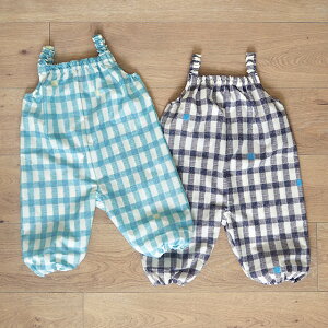 通気性にも優れる綿素材使用。薄目のチェック生地ですが、軽くて丈夫です。すっぽり被るだけで可愛く汚れ防止◎お砂場遊び、おゆうぎ、お料理のお手伝い、お絵かきなどいろ