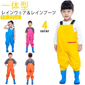 一体型 レインウェア&レインブーツ 15-23cm成長に合わせて肩ひものチャックのかけ替えでサイズアップ成長の早いお子供でも長い間楽しめます。ウエストにゴム入り、よくフィットできます。アウトソールにはPVC素材を使用し、滑りにくく頑