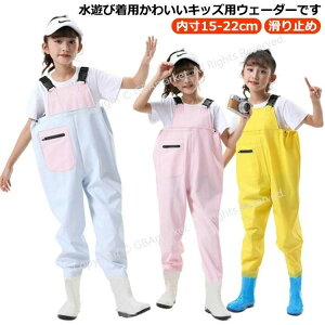 水遊び着用かわいいキッズ用ウェーダーです。全7色があって、男の子でも女の子でも使えます。靴とズボンは熱溶着で接合しており、耐久性に優れます。また、丁寧な縫製により剛性に優れます。靴底には厚底ソールを使用しており、安定性