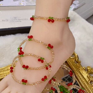 ブレスレット レディース 水晶 チェリー シャンパンカラー 手編み ビーズ 超仙 かわいい 韓国 アクセサリー 砂糖玉 スイート おしゃれ 普段使い フットチェーン・スタイル: 韓国・素材: 樹脂.プラスチック...