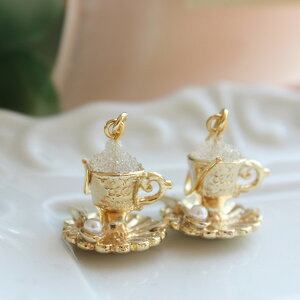 【サイズ】全長約:2cm(金具含まず)ティーカップ約:縦1.5、横1.5cm 【素材】金具:メッキ 【デザイナーからのコメント】 立体のデザインが高級感があり素敵なティーカップのチャームに一目惚れ♪お砂糖シュガーがたっぷり盛られたティ