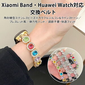 Xiaomi Band・Huawei Watch対応 交換ベルト 角砂糖型ステンレスビーズ×カラフルジルコン&ラインストーン/ブレスレット風/弾力性バンド/調節不要・快適フィット あなたのスマートウォッチを、手元から華やかにアップグレ...