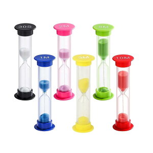カラフルな砂時計!【1分/3分/5分/10分/15分/30分】6個セット!1分/3分/5分/10分/15分/30分計ることができます。流れ落ちる砂にゆったりとした時間を感じます。勉強や歯磨き、キッチン...