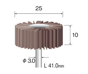 ●加工素材へのなじみが良く、平面だけでなく曲面への作業にも対応します。●研削時の発熱が少なく被削材の研削焼けが起こりません。●ラジアルサンダー●入数:1Pack/3ヶ入り●軸径:φ3.0mm●全長L(mm):41.0●粒度:240●砥...