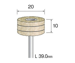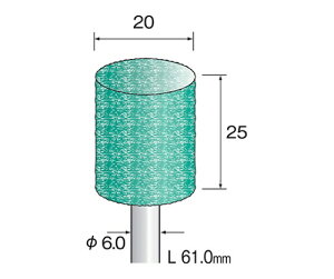 ●回転工具に取付けて研削する砥石です。●ステンレスの研削に適しています。●外径(mm):19●高さ(mm):32●軸径(mm):6●砥材:WA材●粒度:#60●形状:円筒型●最大許容回転数(min-1):25,000