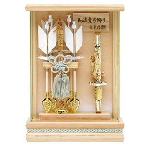 古くから邪気をはらうという意味合いを持ち、 神事や占い行事で用いられてきた破魔弓。 現在は男の子の初めてのお正月に、 魔を祓い子の健やかな成長を願い飾られます。 飾り方2WAYの破魔弓ケース飾り。 そのまま棚やテーブルに飾れ、壁