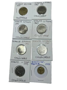 FRANCE 8 Coins, 6 (1960-61-74-75) ONE FRANC AND 20,5 (1975-77)Centimes Coins MS商品について額面:1フラン、20.5サンチーム流通/未流通:流通構成:銅、ニ...