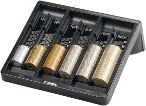 各硬貨が50枚収納出来ます。10枚毎に段差が付いており両替にも便利です。片手でも両手でも持ち運びが大変便利です。