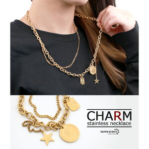 詳細 商品概要 【ポイント】 ・ダブルチェーンに、チャームがじゃらっと付いた存在感のある人気アイテム。 ・太幅の小豆チェーンと華奢な喜平チェーンの組み合わせで、身に着けた時の可愛さがさらに加速。 ・ステンレス素材を使用。錆