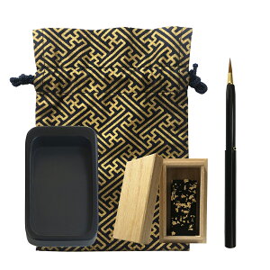 持ち運べる書道具セットです。こだわりの和柄の巾着の中に、硯・墨・筆の3点が収まります。手紙や、書など、お好きな時にこれさえあればいつでも書けます。