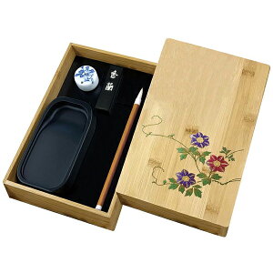 【内容品】 ・太筆(超品白鳳:半紙2〜6字に) ・細筆(玉葉:細字書簡に) ・硯(五十三寸) ・固形墨 玄趣(1.5丁型) ・墨液 三歌仙 50ml(墨運堂製) ...
