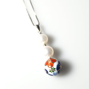 手作り手描き 伊万里焼 ★磁器 ★ 伊万里焼パールペンダント チェーン べェネチアンK18WG 長さ40センチor36センチ(長さ調整引き環付) 重さ 約5グラム 磁器 磁器部分(約11×11mm) ...