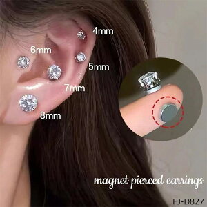 Aliexpress Choice#アリエク選定 4 ペア 6MM キュービックジルコニア磁気スタッドピアス男性用、ステンレス鋼磁気クリップオンイヤリング、非ピアスイヤリング