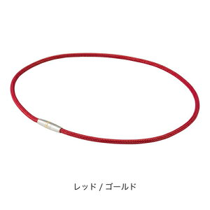首や肩のこりでお悩みの方に。紐の中芯すべてに採用された強力な磁気が、首・肩を包み血行を改善。 留め具部分のポイントカラーにゴールドを使用したシンプルかつスタイリッシュなトップ。紐部分にラメ糸を編み込んだ高級感のあるデザ