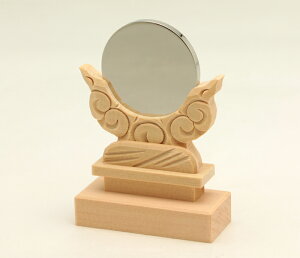 神棚の御扉前に置いていただく本格的な真鍮製神鏡です プラスチック製やアンチモニー製にはない輝き 台は木曽桧製 伊勢神宮のお膝元から発送