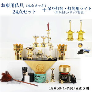 浄真宗大谷派(お東)用の仏具セット。 仏間式・直置式(50代・18号)のお仏壇向けセットです。 ●価格は、よねはら特価! 商品説明 セット内容 ・仏器 本金メッキ#10(高さ6.0cm直径5.1cm)×2 ・PC六角仏器台金色(豆)(...