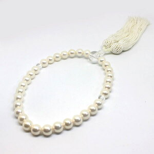 ギフト対応 ■商品詳細 普段使いしやすいシェルパールの念珠。どの宗派の方にもお使いいただけます。 8mmのシェルパール(貝パール)の念珠(数珠) カラー 白 頭房(人絹)女