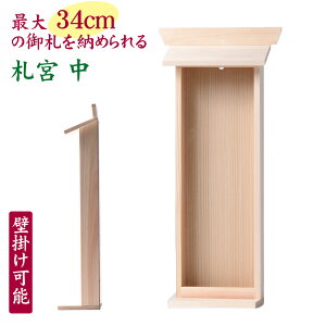 札宮 中 壁掛け可能な簡易神棚 最大で縦34cmの大きな御札を納められ 前面をアクリル板にする事で低コストで 作られている神棚 材料に銘木東農桧を使った国産品 札宮中詳細 外寸 高400×屋根幅180×奥行85mm...