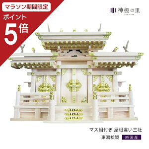 ■神棚の特徴■ 中央屋根下にマス組が施されており垂木が二段組され重厚感と高級感あふれる神棚です。 裏屋根が取り外す事ができ大きなお札も容易に交換することができます 価格以上に豪華でお買い得な神棚です。...