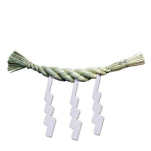 1尺サイズの鼓動型しめ縄しめ縄は、そこが神聖な場所であることを示すために張られる縄のことです。内と外を区別し、神棚を不浄から隔てる役割を持つ神祭具です。稲妻の形である紙垂は豊作を表し、邪なものを祓い、聖域を示しています