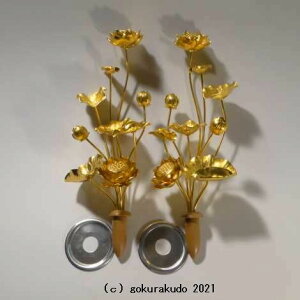 商品名 金蓮華 6号9本立て 軽合金 消金 1対 商品説明 常花(金蓮華)は蓮の花の形をした造花です。 仏教において蓮の花は、泥にけがされずに清らかな花を咲かせる蓮は、智慧や慈悲の象徴です。 お寺の本堂と同じように仏さまの国を表