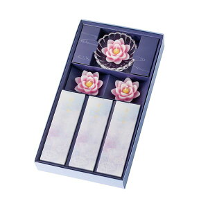 ■その他のバリエーションその他の「当シリーズ」その他の「関連商品」■商品について「祈る心」をお伝えしたいけれど、相手に気を使わせたくないという方から選ばれる紙箱のご進物。清らな哀しみを表現した色使いと繊細な蓮のローソ