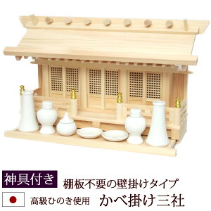 【商品情報】 ◇静岡木工 神棚の里 壁掛け三社 出雲 棚板付 ◇棚板がセットされている神棚 ※壁への取り付けは壁にあったビスを別途ご用意いただき、ビスに引っ掛けるだけの簡単設置 ※お社は落下防止、耐震機能付きのすぐれた神棚...
