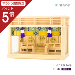 ガラス宮16号■ ■神棚主要材:檜葉(ヒバ) ■神棚外寸:39(高)-48(巾)-32(奥)センチ 三社タイプの箱宮神棚です。 御神札は扉枠を外してお納めするため簡単にお納めできます。 一般的に神棚の使用材は「ひのき」となりますが...