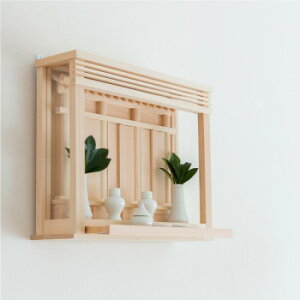 神具も並べられる箱型の神棚壁にかけることもでき、すっきりと収まるため、近年人気がであるデザインです。【注意事項】※自然素材のためヤニが発生する場合がございますが、品質に問題はございません。※発生した場合の対処方法…エ