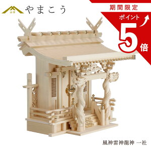 商品詳細 神々を壮大に祀る 彫刻をちりばめた、神棚 風神雷神と双龍の彫刻、天界の神々をイメージした美しく壮大なお社です。桧ではなく、年輪・木目がほとんど無い淡い単色のヒバ材で作られたお社。清楚で上品、工芸品のような趣き...
