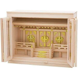 中央扉26cm、左右20cmまでのお神札に対応、底部の台座をスライドしてお神札をお納めする事が出来ます。 ●サイズ:縦20cm×横40cm×高さ35cm ●重さ:1300g ●素材:東農桧 ※天然の物なので稀に木ヤニが出る事があります...