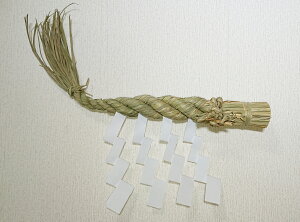 稲わら製のごぼう型しめ縄です。しめ縄は、神様の領域(常世)と人間の領域(現世)を区別するために張られるもので、神様が降りた神聖な場所を示すものです。しめ縄を取り付ける際の向きは、一般的に向かって右側に太い部分が来るように飾ります。切り...