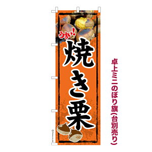 雑貨|販促グッズ|ミニのぼり旗商品名「既製品ミニのぼり旗 焼き栗 高品質デザイン メール便可」ミニサイズながらしっかり視認できるちょうどいい大きさを考えました。卓上のマスコットとしてだけではなく、広告の役割をしっかりと果た