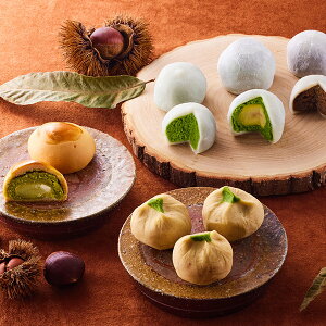 抹茶餡の3種の餅まんじゅうと、季節限定の栗まんじゅうとの詰合せです。 【日保ちの目安】7日 【内容量】餅まんじゅう6個(小倉餡・手芒餡・抹茶餡各2個)・栗まんじゅう5個 【寸法】...