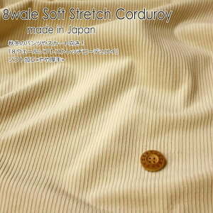 秋冬のハンドメイドにオススメのストレッチコーデュロイです。8ウェールの少し太めの畝タイプ。ソフトな肌触りとほど良い起毛が温かみのある表情で、くったりと優しい風合いが魅力です。