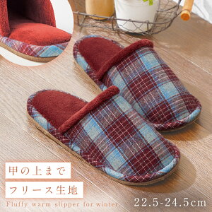 ルームシューズ レディース スリッパ ライフスタイル雑貨 くつ 靴 ボア生地 チェック柄 滑り止め付き ふわふわ あったか 温活 23〜24.5cm 秋 冬 【TP】 ルームウェア 部屋着 ルームソックス...