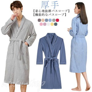 。洗濯時の乾きやすさも考慮された、ほどよい厚みが魅力です。男女兼用なので夫婦やカップルでお揃いもオススメです。 【水分を外に逃がさず】入浴後、体温調整のため汗をかきます。バスローブは汗が吸い取り湯冷めを防止します...
