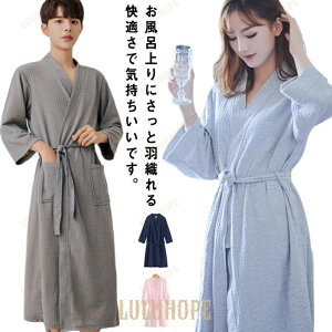 お風呂上りにさっと羽織れる快適さで気持ちいいです。ワッフル生地はふんわりの手触りがよく厚手で透ける心配ない。吸水性・速乾性に優れ、快適、優しい着心地に仕上げています。厚すぎず薄くもない丁度いい厚みで季節問わず利用可能