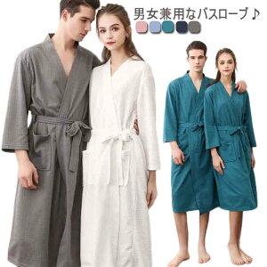 バスローブ 膝丈 男女兼用 ワッフル生地 軽量 柔軟 通気 メンズ レディース 春 夏 秋 冬 薄手 風呂上がり パジャマ 部屋着