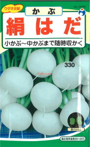 メーカー:中原採種場 【特徴】 ○生育は旺盛で、播種後35日位から小蕪として均整がとれまた40〜45日で豊円な中蕪に、50〜60日で大蕪に達し随時収穫できる、栽培容易な四季蒔きの出来る耐病蕪である。 ○根部は純白で品質良く、首もと、尻