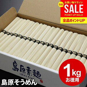 箱サイズ/32×21×3cm。商品内容/島原そうめん50g×20束(1kg)。