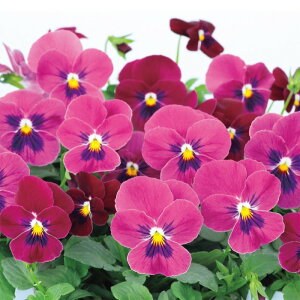 規格 約40粒 袋 中小輪 おしゃれでシックな深い色合い 濃桃紅色に黒いブロッチ。発色が美しいので寄せ植えのアクセントになります。名前の通りよく咲き、花盛りのガーデンを長期にわたって楽しむことができます。ビオラの性質を受け継