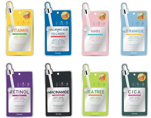 Dcure+ ディーキュア フェイスマスク 個包装シートマスク 8種各1枚詰め合わせ(ビタミン/8種のヒアルロン酸+コラーゲン/レチノール/ナイアシンアミド/NMN/5種のセラミド/ティーツリー/CICA) た...