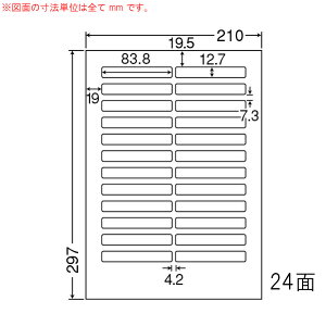【商品説明】●入数:500シート1梱包●シートサイズ:A4 210mm×297mm●ラベルサイズ:83.8mm×12.7mm●面付:タテ 12面 ヨコ 2面 1シート 24面