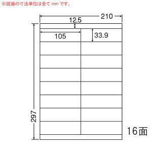 【商品説明】●入数:500シート1梱包●シートサイズ:A4 210mm×297mm●ラベルサイズ:105mm×33.9mm●面付:タテ 8面 ヨコ 2面 1シート 16面