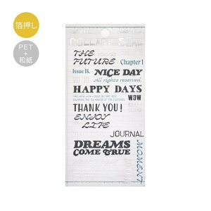 文字を組み合わせて自分好みにコラージュするなど幅広くお楽しみいただけます。 ●素材:PET、和紙 ●2シート入り ●箔押し