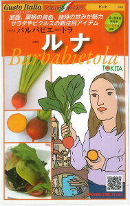 特性 ルナは形がカブに似ていますが、カブではなくホウレンソウと同じヒユ科(旧アカザ科)で、ミネラル含量に優れ、栄養価の高い根菜です。丸型で、ゴルフボールから野球ボール大で収穫します。ゴルゴ程ではないですが、黄色い渦巻き