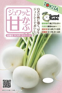 品種の特徴 肉質はキメ細かく柔らかでジューシーかつ甘味があり生で食べても美味しいフルーツの様なカブです。 播種時期は春から秋(真夏の栽培は除く)になり、比較的暑さにも強い品種です。 暑い時期もかぶの形が縦長になり難く、球形