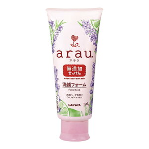 120gブランド:arau.(アラウ)販売・製造元:サラヤヤシから高純度精製されたせっけん成分に、3種類の天然ハーブ(ラベンダー・スペアミント・シソエキス)をプラスした洗顔フォーム。汚れをしっかり落す